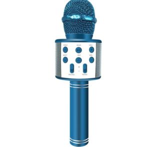 Jucarie sistem wireless pentru karaoke iluminat led, format dintr-o boxa portabila si un microfon, fara cabluri, conexiune bluetooth, 2x porturi usb, port auxiliar, slot pentru card de memorie, cablu usb inclus, culoare bej