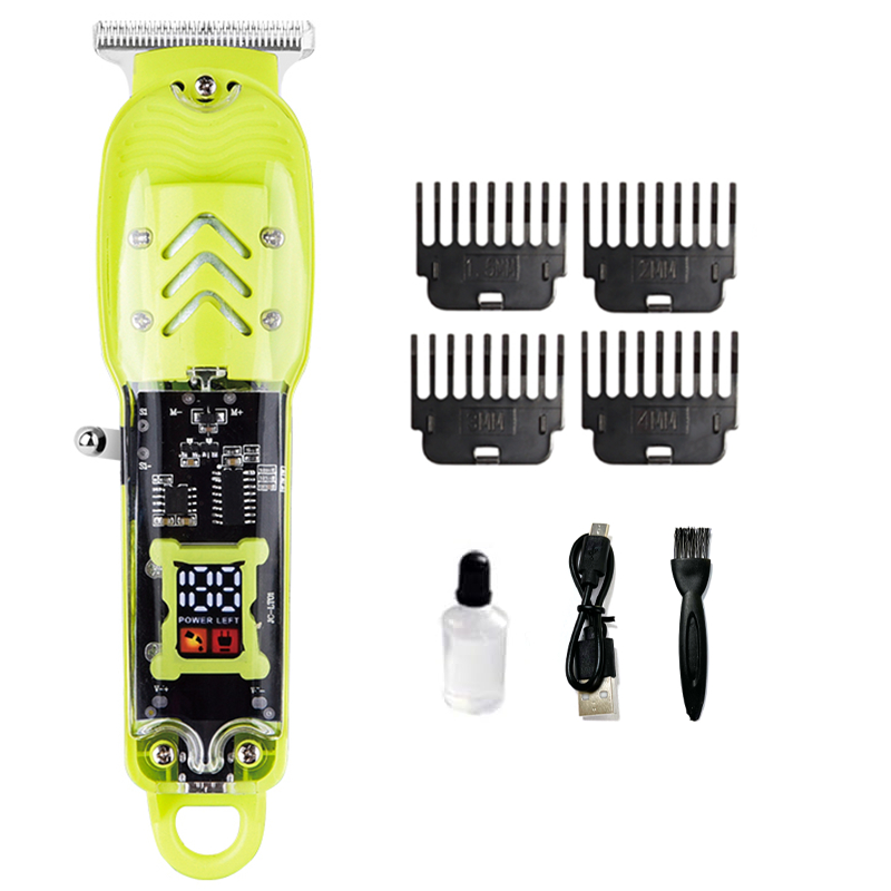 Aparat de tuns profesional, transparent, cu lame din otel inoxidabil, baterie Li-Ion, afisaj LED