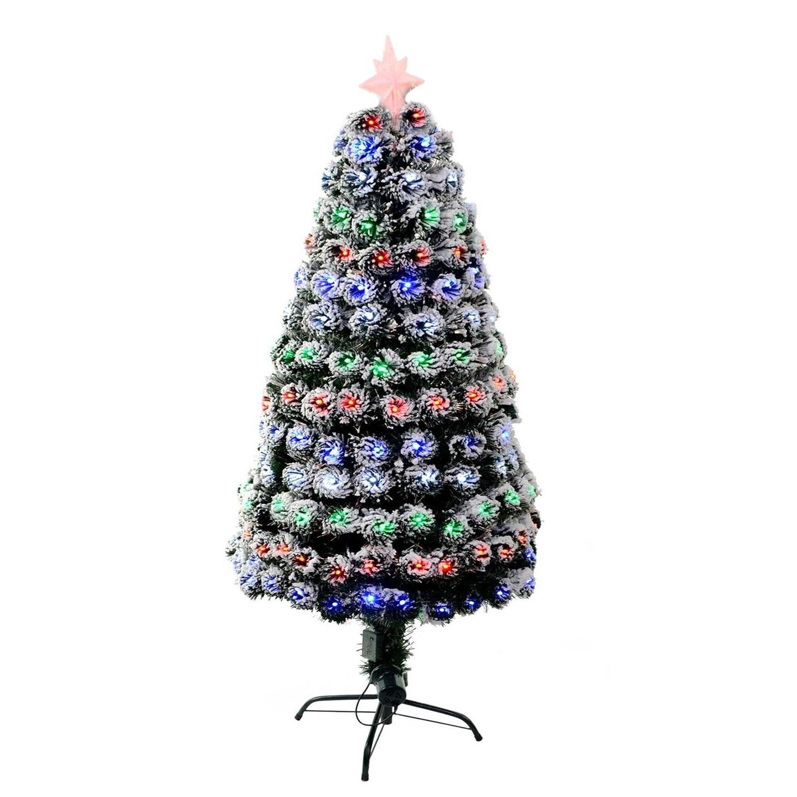 Brad artificial de Craciun, cu fibra optica lunga si LED, 120 cm, varfuri albe, stea si suport incluse
