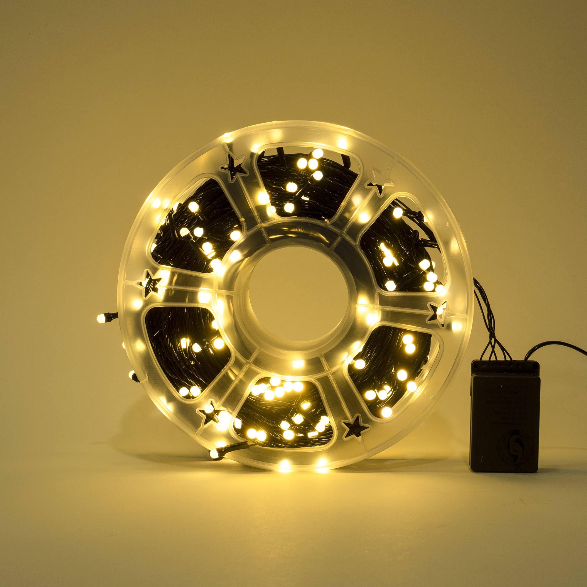 Instalatie de craciun, culoare galben, pentru interior / exterior, 50m, 8 jocuri de lumini, fir negru, B.S.P. / SL297