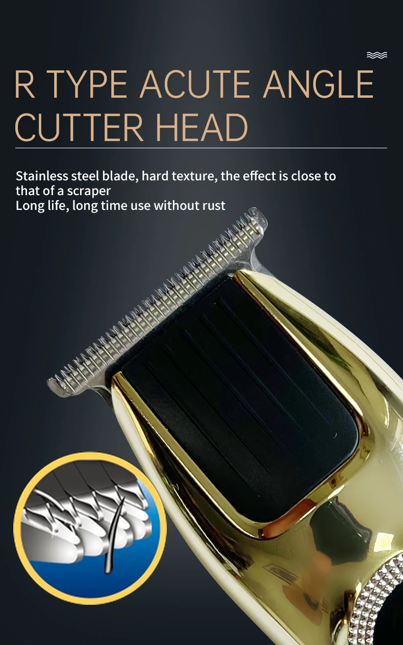 Masina Profesionala de Tuns Barba si Contur Andowl, Zgomot Redus, Foarte Subtire, Varietate de Stiluri, Pentru Orice Varsta, Fara Fir, Cu Lame din Inox, Auriu