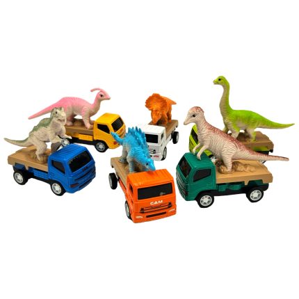 Set 6 camione de transport Dinozauri, din metal, ABS si plastic, Multicolor, 6, 7 cm