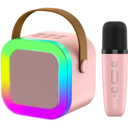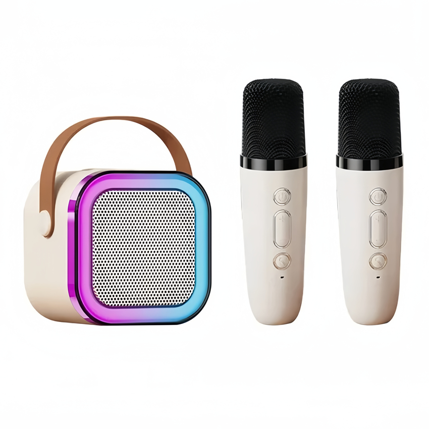 K12 Microfon karaoke Smart copii si adulti, Wireless, 2 microfoane incluse,Bluetooth 5.3,Lumina RGB,Suporta moduri multiple de intrare,Bej
