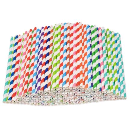 Paie de hartie, model cu dungi, pentru bauturi, multicolor, 100 buc/set, 0.635×19.685cm