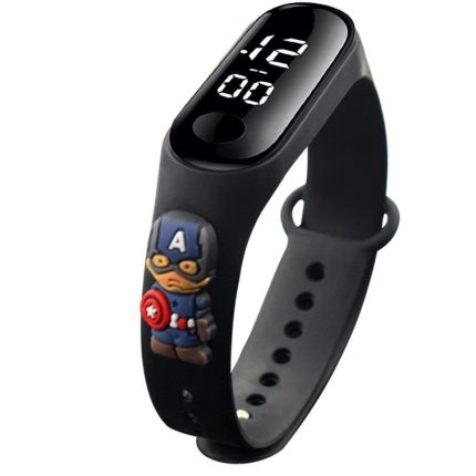 Ceas digital copii, Waterproof, Captain America, OnePepito, afisaj ora data si secunde, curea reglabila silicon