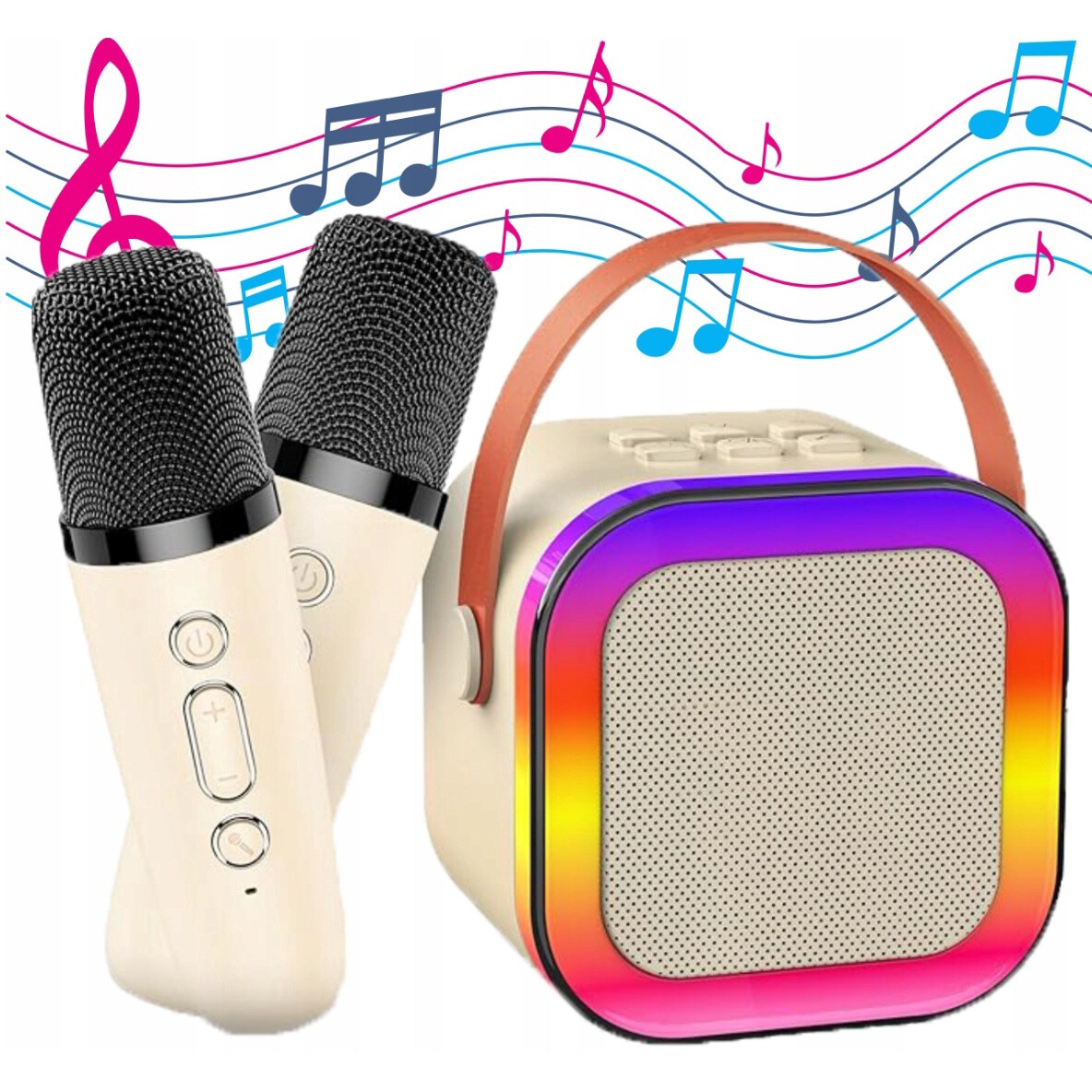 Set 2 microfoane karaoke copii si adulti cu difuzor portabil, Wacorresi, Wireless, Multiple efecte sonore Karaoke, cantat bine si distractiv, mini karaoke, microfon dublu, roz